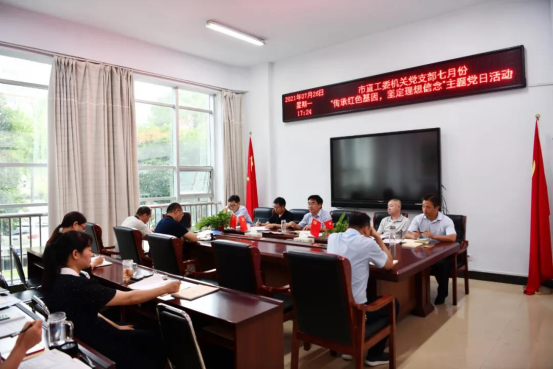 7月26日,驻马店市委直属机关工委机关党支部组织开展以“传承红色基因 坚定理想信念”为主题的7月份主题党日活动。市直工委书记王红卫等班子成员参加了主题党日活动,市直工委副书记、纪检监察工委书记、机关党支部书记徐青峰主持主题党日活动。