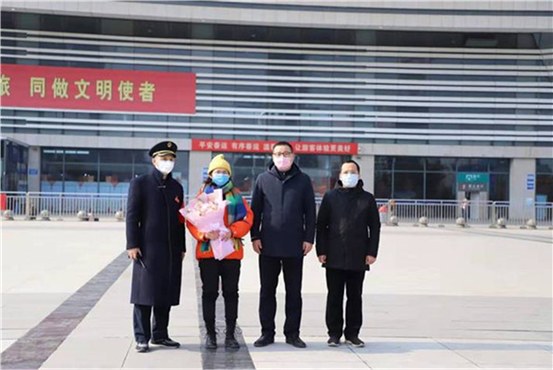 在市政府领导的关心下,热线工作人员与武汉市铁路部门等单位进行沟通、协调,通过驻汉两地工作人员的不懈努力,一条逆行返汉的绿色通道被打开——1月29日13时29分,政务热线工作人员护送梅晓榕登上了从驻马店西到岳阳东的G421次列车,这趟列车将专门为她在武汉火车站停靠2分钟。临上车前,热线工作人员为梅晓榕送上了鲜花及口罩、酒精等防护用品。当天下午,梅晓榕便安全抵达武汉,投身于疫情防控工作中。