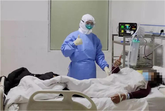 1月26号的下午,我和其他支援一线的同事,一行5人一起来到了呼吸重症医学科,护士长宋小秀老师为我们再次培训了防护知识,接着我们很快熟悉了环境,分好班次,换上防护服和隔离衣开始了我们新的挑战。因为穿防护服和隔离衣需要时间,所以我提前将近一个小时就要开始准备,穿好工作衣、防护服、隔离衣,戴好口罩、帽子、护目镜后,已是一身汗,觉得闷的连呼吸都很困难,同事给我说:“你现在出去,估计你妈都不认识你,我给你拍张照片吧?让你妈看看”。此刻,我沉默了!父母和哥嫂远在郑州并不知情。我无法面对他们,我怕已经憋回去的泪水再次涌出。进入隔离病房交接班后,就开始了忙碌的工作,穿戴着防护服和橡胶手套后所有的操作都显得有点困难,加上护目镜上易起雾,看东西都有点吃力,所以,每一项操作都要格外认真、小心、细致,除了病房常见的输液、雾化等治疗外,因肺炎的病人都有恶心、呕吐、腹泻等症状,一边要为病人清理排泄物的同时一边又要严格监测病人生命体征,及时发现病人有无脱水等现象。一位女病人在我为她监测生命体征时,突然握着我的手对我说:“我想知道你的名字?”看到我不解的眼神,她接着说道:“我恶心又拉肚子,一趟一趟的你都没闲着,可却还是很关心我的感受,一遍一遍不厌其烦的为我量体温、血压,你这会儿肯定一身汗。真的很感谢你!我不是本地人,家是武汉的,你们给了我信心。”那一刻,一股暖流涌上心头!其实,在这种工作环境中,闷的呼吸都难,和病人的沟通,我做的远远不及以前在科室的十分之一,这里更多的是无声的陪伴和指导。病人的理解和感谢是对我工作的认可,是督促我前进的动力!