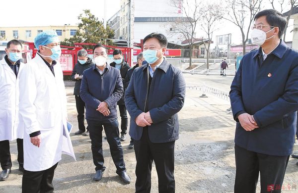 2月1日,市委书记陈星到泌阳县查看疫情防控工作。 记者弓华静摄