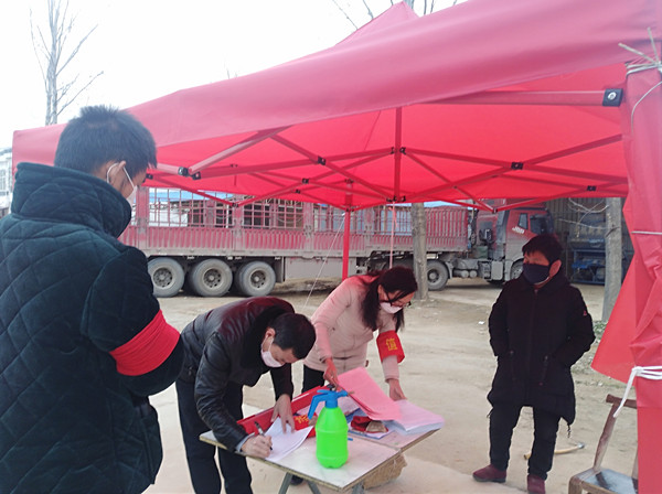 在卡点上,在驻村第一书记和其他谭园村党支部成员的带领下,党员戴上党徽、亮出身份、作出示范,鲜艳的党旗飘扬在防控疫情斗争第一线。值班人员认真负责登记出入人员、车辆,劝阻外来人员,宣传防控知识,对卡点环境进行消杀,全力以赴实现外不输入、内不扩散的目标。