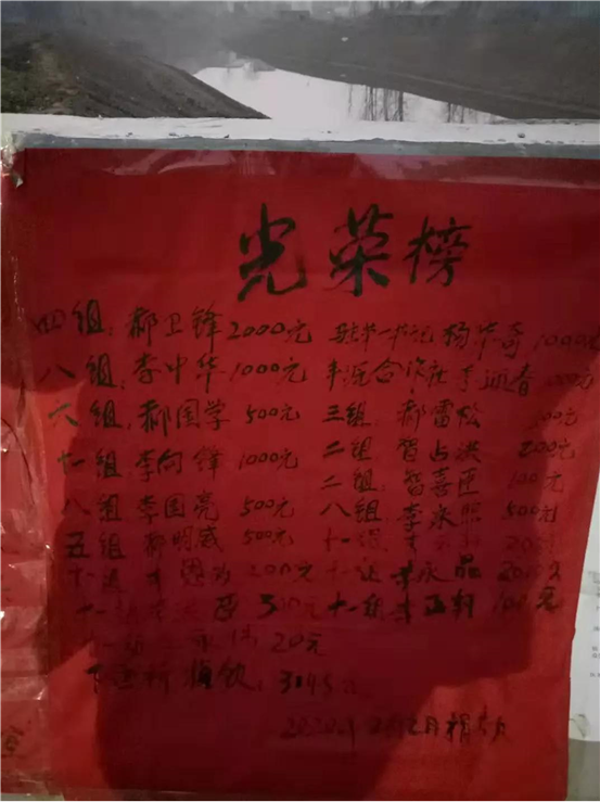 随着肺炎疫情排查管控工作的不断深入,资金紧张、防控物资不足的矛盾日益突出。为积极解决现实问题,驻村工作组决定不等不靠,切实发挥党员先锋模范作用,驻村书记杨华奇、驻村工作队长高勇带头,于1月30日各自捐出人民币1000元,用于驻在村疫情防控工作。在驻村工作组带动下,郝坡村两委干部也积极参与捐款,从而有效缓解了资金不足的压力。