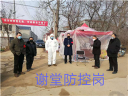 人员到位。驻村工作队员于1月27日(正月初三)奔赴大路李乡谢堂村,与两委成员实行网格化管理,岗位落实人、责任落实到位,充分发挥党员的先锋模范作用。党员们在防疫卡点重温《入党誓词》,把初心、使命书写在防控疫情的第一线。中心党组对驻村防疫帮扶工作十分重视,加强指导。2月6日上午,副主任陈卫国一行4人到谢堂村看望慰问防控人员,对驻村工作队员的在岗在位情况进行了检查指导,要求大家去除紧张心理和麻痹心理,以科学的态度投入到工作和生活中去,认真做好疫情防控工作。