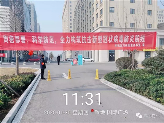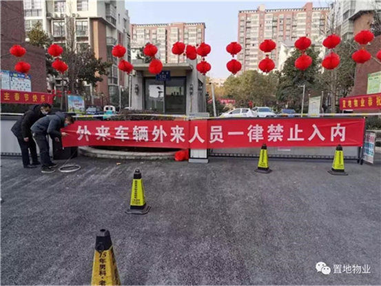 置地集团在公司领导的高度重视、全面部署下,物业公司全体党员及干部员工对所有小区展开拉网式排查、不留死角、业主24小时出入登记,配合小区做好疫情宣传工作,悬挂宣传条幅,提高业主大局观念。置地物业所有党员和一线人员坚守岗位,全力以赴,用实际行动做好疫情防控,让业主安心!