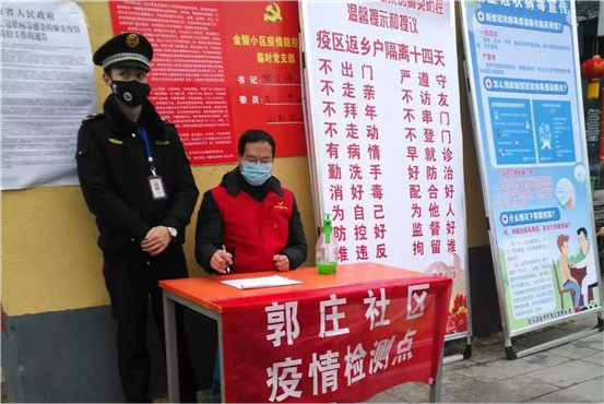 市粮食和储备局党员志愿队在金河办事处郭庄社区金骏小区开展疫情防控