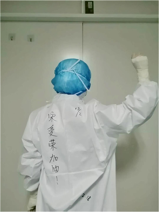 在抗疫的主战场,防护流程严格,全身防护下,防护口罩和眼罩紧紧勒住面部,不但让人呼吸困难,同时还要忍受护目镜口罩嵌进肉中的疼痛,在病区长时间高负荷的工作,极易导致大脑缺氧。在这样的条件下,宋爱荣有时会出现轻度眩晕的状况。但她为了保证工作顺利进行,只是在工作间隙休息片刻,便又再次投入到战斗中。穿着厚厚防护服,宋爱荣经常连续4小时滴水不进。有一次,她从病房做完治疗出来,感觉鼻子内不舒服,口罩摸不得,更不可能取下来,直到坚持到当天值班结束。