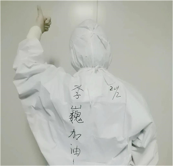 在李巍正奋战在抗疫一线的同时,医院党委以多种方式温暖着一线人员的心。建立了党员“一对一”志愿者服务队,帮扶人员多次亲自向一线人员家属送去党委和领导的关怀和慰问,解决生活方面的困难;护士长时常的电话鼓励与支持,让李巍觉得不是一个人在战斗。经常为自己所在的这个光荣集体、优秀团队而自豪。