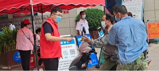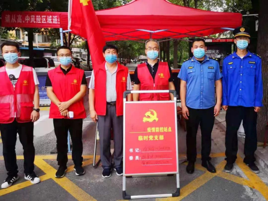 市公路事业发展中心组织16名党员组成志愿服务队,自8月10日起,下沉到高新区金桥办事处,对6个小区的居民进行严格排查,志愿者们和社区工作人员一起,做好进出居民体温检测、口罩佩戴、健康码出示等防控工作。同时开展防疫知识宣传,提高群众科学防护本领。