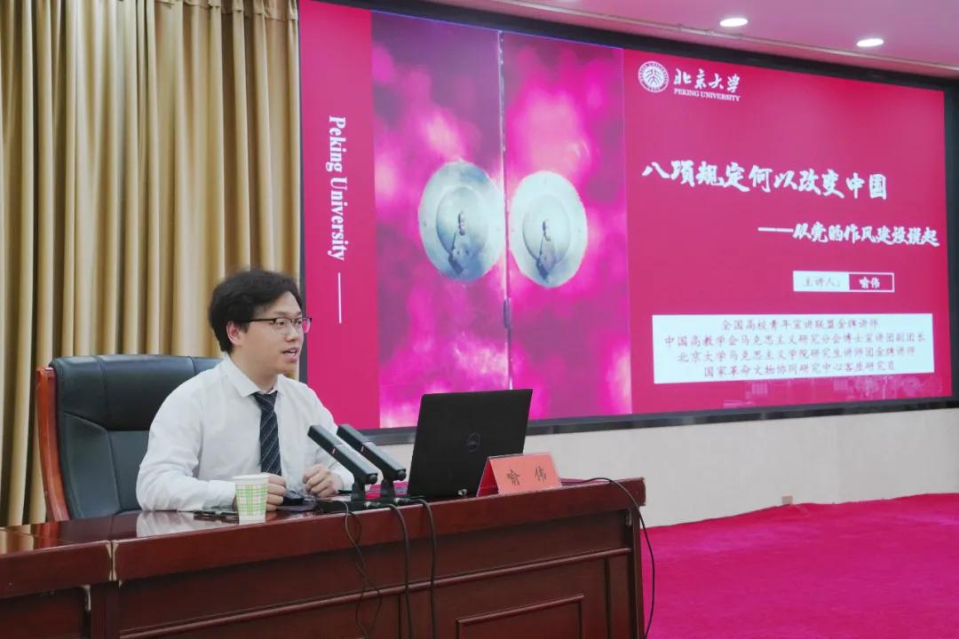 喻伟老师以《八项规定何以改变中国——从作风建设说起》为题,从“开局破题”“一以贯之”“化风成俗”三个部分展开详细讲解。讲座中简要分析了“八项规定改变中国”的历史、理论和实践逻辑;抓住“一以贯之”这个关键词,回顾了中国共产党历史上作风建设的具体实践,进一步阐释了中央八项规定作为党的作风建设时代续篇和理论新篇的内在逻辑。从本次学习教育的部署要求出发,号召大家认真学习贯彻,以作风建设新成效为进一步全面深化改革、推进中国式现代化贡献力量。