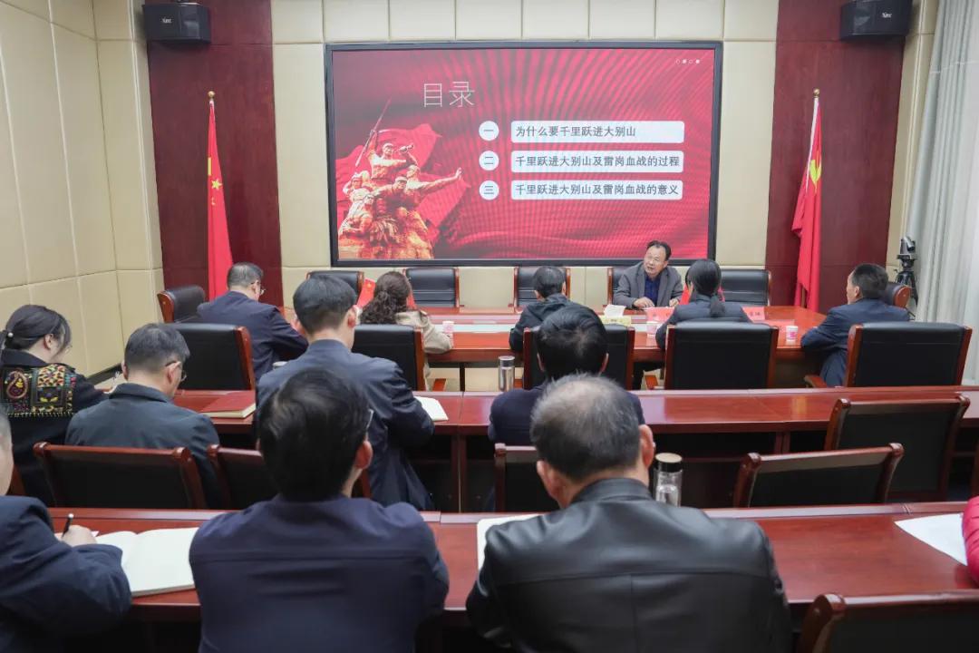 研讨会特邀正阳县委党校党委书记、常务副校长涂昕以《千里跃进大别山 雷岗血战是关键》为题,为大家讲解了千里跃进大别山的战略背景,刘邓大军强渡汝河的历史背景、发生过程、历史结果以及雷岗血战的发生细节。