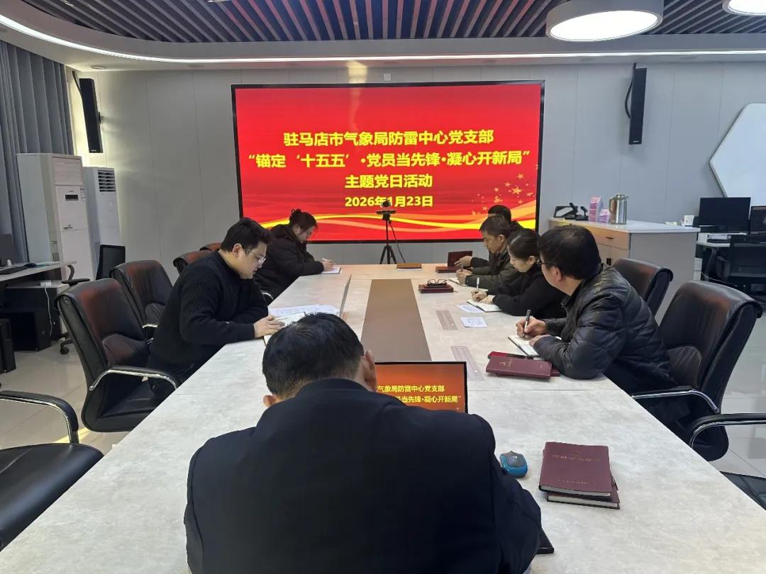 近日,市气象局防雷中心党支部以“锚定‘十五五’·党员当先锋·凝心开新局”为主题开展主题党日活动。通过集中研读“十五五”规划建议、党员研讨交流等形式,深入学习把握规划提出的战略目标、重点任务和实践要求。会议通报了违规违纪典型案例。最后,全体党员重温入党誓词。大家纷纷表示,要把学习成果转化为干事创业的强大动力,在“十五五”新征程上勇挑重担、奋勇争先,为驻马店气象事业高质量发展贡献力量。