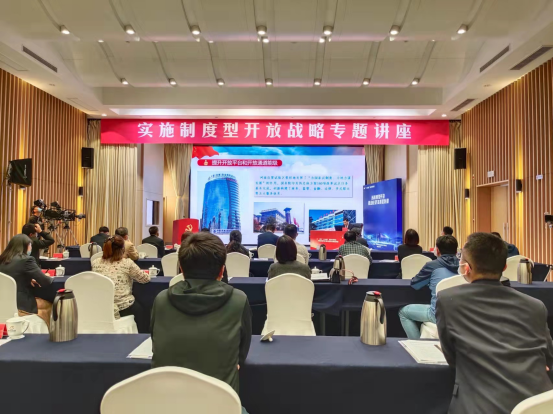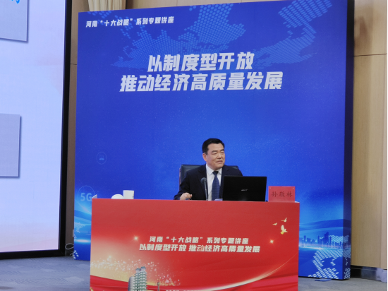 河南省商务厅党组成员、副厅长孙敬林以《以制度型开放战略推动经济高质量发展》为题做了专题辅导。