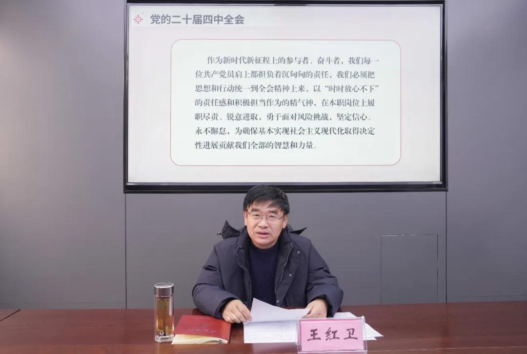 王红卫以“学习贯彻党的二十届四中全会精神 做一名无愧于时代的共产党员”为主题,从三个方面作专题辅导。一是深入解读党的二十届四中全会的主要精神和发展目标。介绍了全会核心议程及重大成果,解读了“十五五”时期经济社会发展主要目标和到二〇三五年的远景规划。二是深刻阐述新时代党员干部履职尽责的时代背景。从我们所处的时代是中国历史最好的时期、是实现中华民族伟大复兴最接近的时期等方面,阐述了当前所处的伟大时代特征,让党员干部深刻认识到生逢其时、重任在肩的使命担当。三是面对百年未有之大变局,作为一名共产党员应该做什么才能无愧于这个伟大的时代。围绕“坚定信仰、依靠组织、热爱事业、勇于担当”四个方面,介绍了革命先烈、时代楷模的典型事例,号召党员干部要把个人理想融入到中华民族伟大复兴进程之中,紧密团结在党的周围,以爱岗敬业的作风、攻坚克难的锐气,在大变局中勇当“破局的行动派”,在干事创业中争做“温暖的奋斗共同体”。