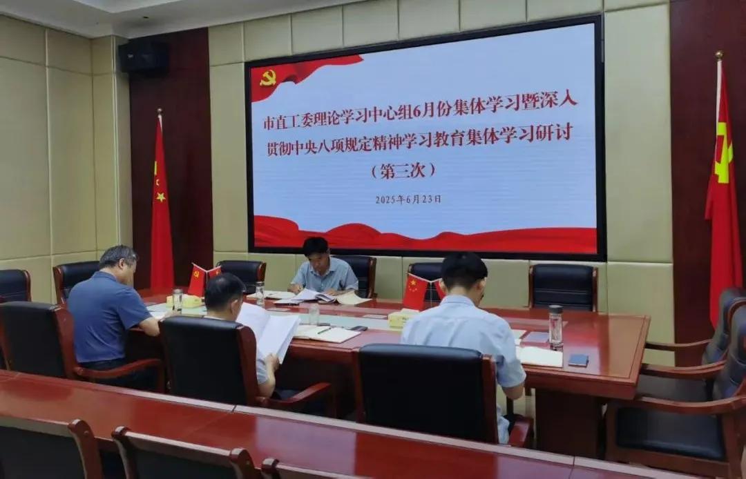 6月23日,市委直属机关工委召开理论学习中心组6月份集体学习研讨暨深入贯彻中央八项规定精神学习教育第三次集体学习研讨会议。会前,中心组成员自学了《习近平关于加强党的作风建设论述摘编》第七章“坚持正风肃纪反腐相贯通”,会上,集中学习了《党的十八大以来深入贯彻中央八项规定精神的成效和经验》《八项规定改变中国》等。围绕“深入贯彻中央八项规定精神的成效和经验”,中心组成员联系思想、工作实际进行了研讨交流。会议强调,要加强思想教育,筑牢作风根基;要健全长效机制,深化标本兼治;要发挥表率作用,引领作风转变。