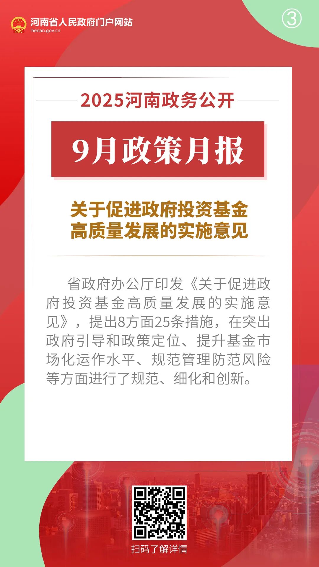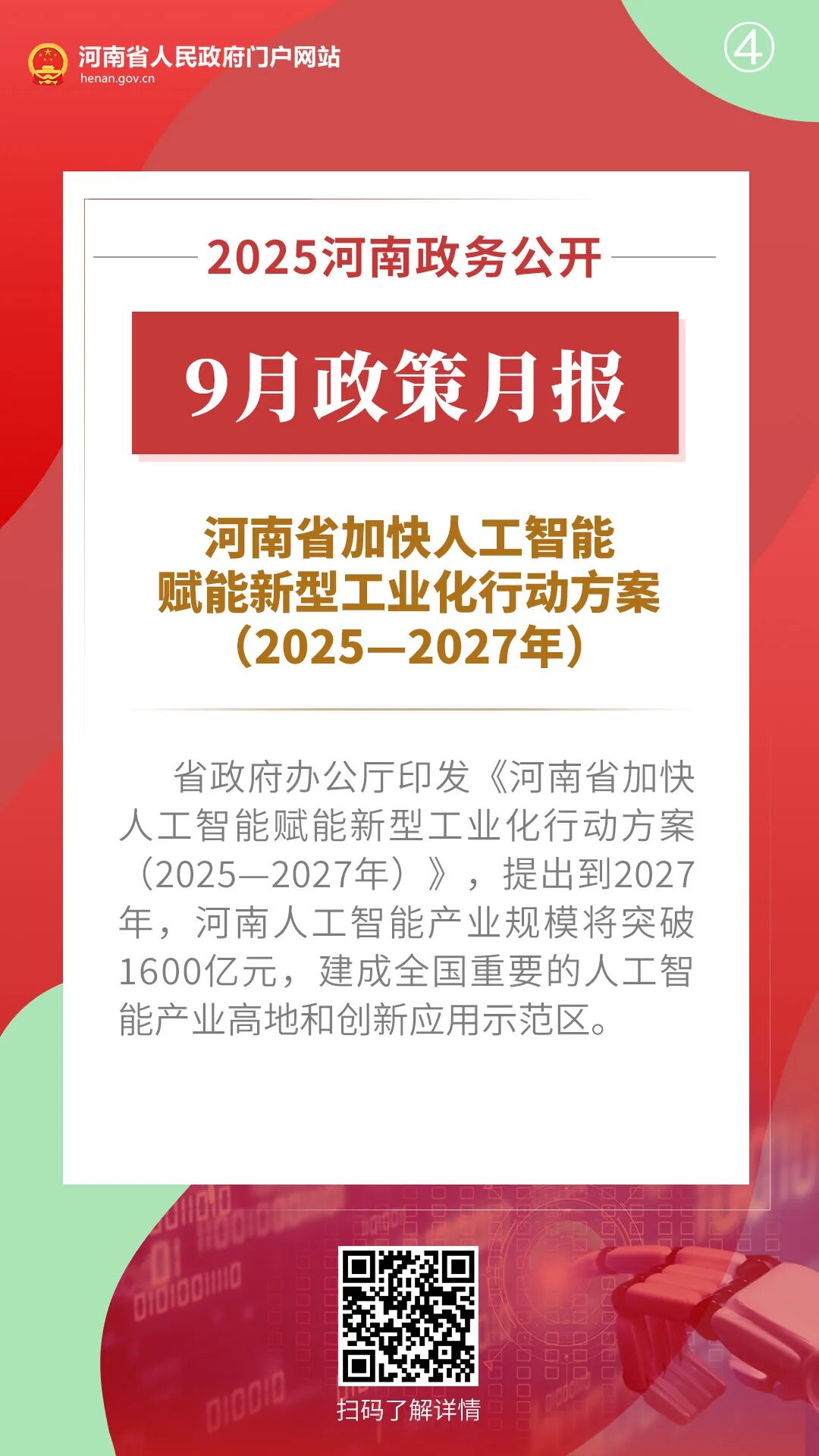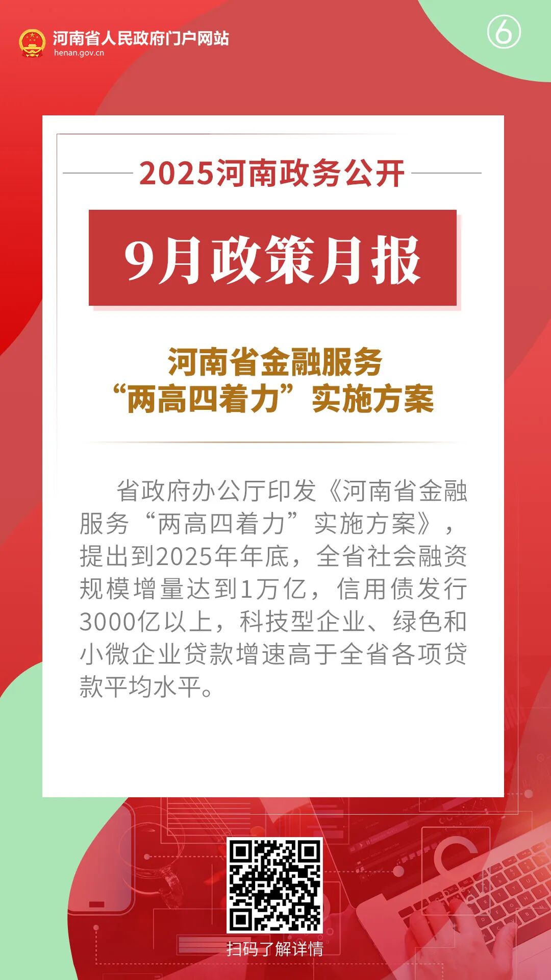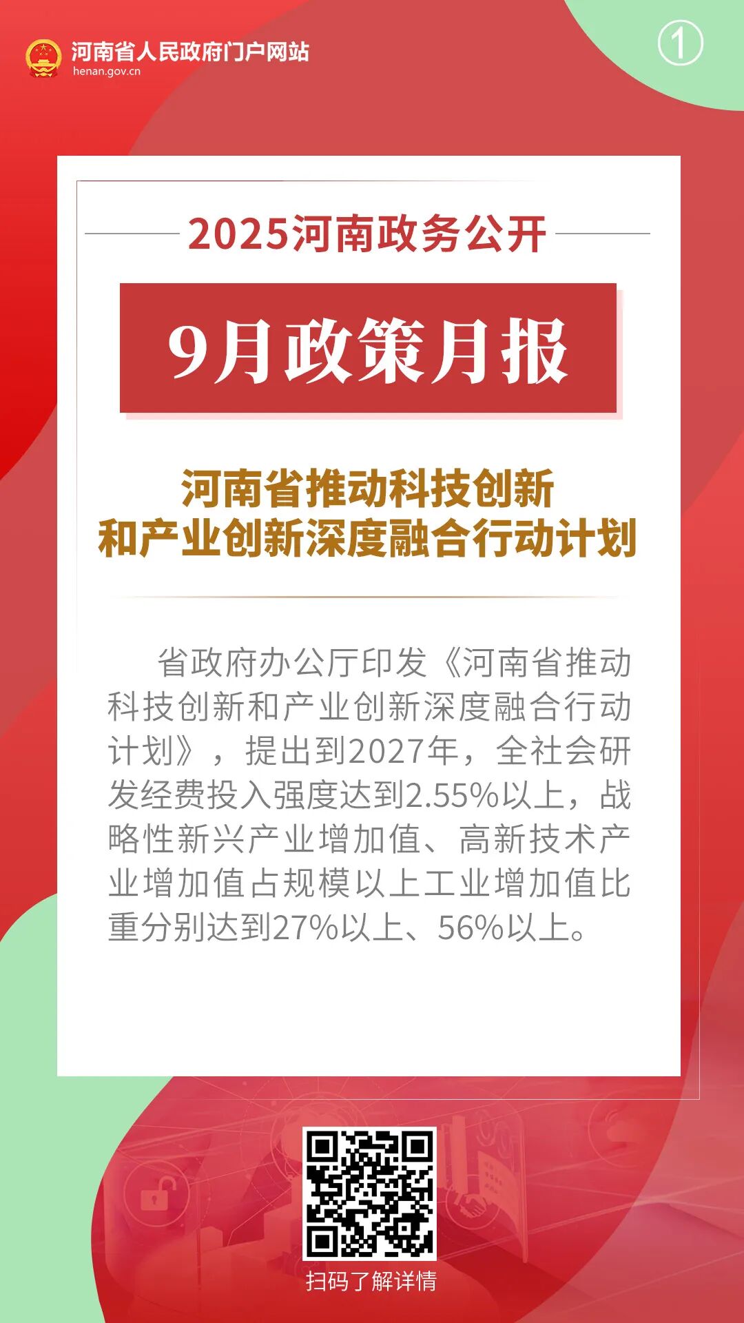 2025年9月,河南省人民政府出台多项重要政策,包括河南省推动科技创新和产业创新深度融合行动计划、河南省电动汽车充电基础设施建设运营管理暂行办法、关于促进政府投资基金高质量发展的实施意见、河南省加快人工智能赋能新型工业化行动方案(2025—2027年)、河南省农作物秸秆综合利用行动方案(2025—2027年)、河南省金融服务“两高四着力”实施方案、河南省重要文物建筑系统性保护三年行动方案(2026—2028年)。通过河南政务公开9月政策月报,一起来看详情——