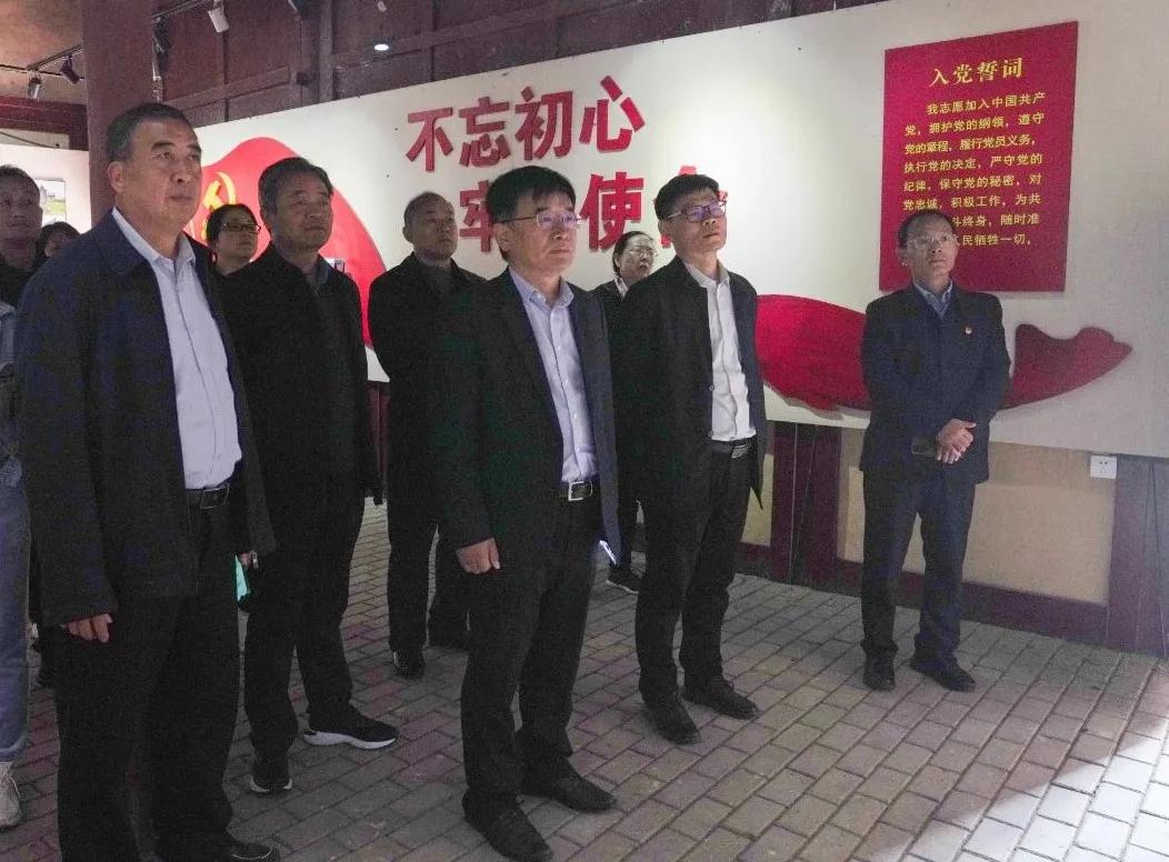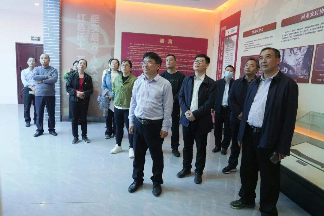 王红卫一行首先来到了信阳市平桥区邢集镇的尖山革命纪念馆。在这里了解了尖山革命斗争的历史,特别是鄂豫边省委在此处开展革命的历史事迹。1935年8月,张星江、仝中玉、王国华等人在唐河县毕店镇商定,将豫南、豫西南、鄂北党组织合并成立中共鄂豫边省委。省委后来又迁到信阳吴家尖山,发展鄂豫边区党组织,创建了鄂豫边游击队。尖山革命纪念馆内部陈列了土地革命、抗日战争、解放战争时期,尖山党组织活动的大量珍贵的历史图片,党员干部通过观看图文资料、聆听现场讲解,了解了尖山地区的革命斗争历史、鄂豫边省委发展壮大的历史事迹。