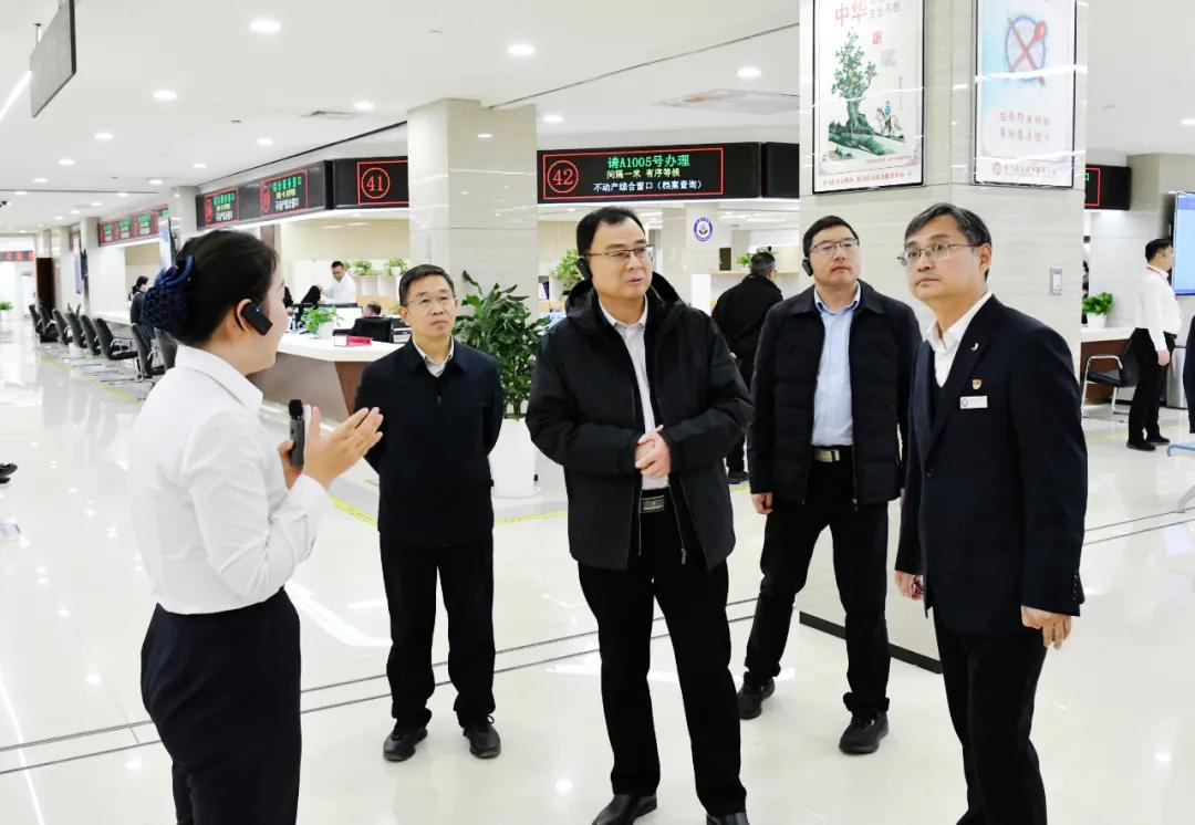 在市政务服务中心,孔凡旭认真听取工作介绍,与中心负责人、党务干部深入交流,详细了解党建与政务服务融合推进的具体举措,实地观摩了窗口第六党支部。孔凡旭对该中心坚持党建引领,以“一名党员一面旗帜,一个支部一座堡垒”为抓手,聚焦“一支部一品牌”建设,将为民服务中的重点、难点、堵点作为党建品牌创建的切入点和着力点,通过“以服务促党建、以党建优服务”实现二者深度融合、同频共振的做法,给予充分肯定和表扬。