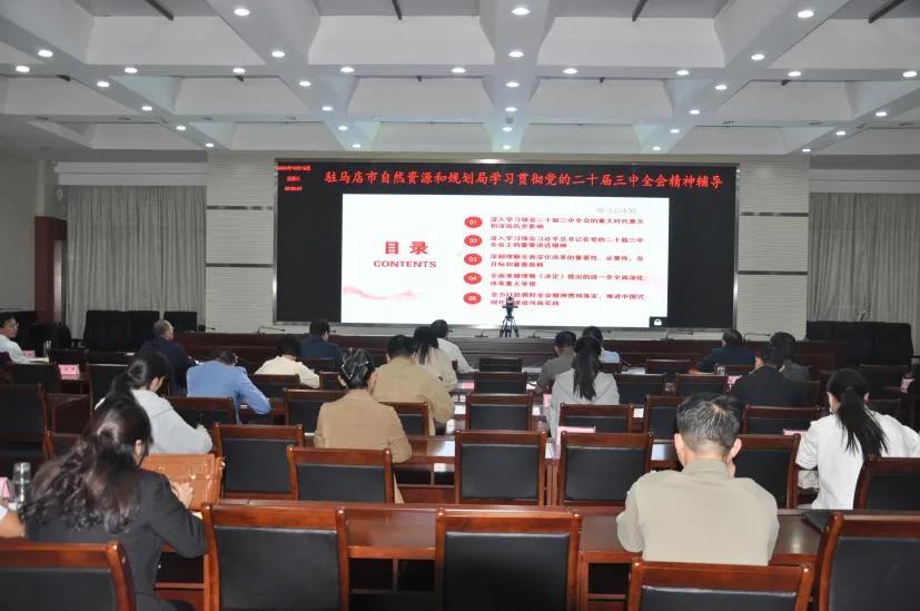 10月15日至10月16日,市自然资源和规划局组织党员干部职工观看学习贯彻党的二十届三中全会精神专题辅导讲座,以视频会议的形式聆听了省社科联主席、党组书记李庚香以《深学细悟党的二十届三中全会精神,推进中国式现代化建设河南实践》为题的专题辅导。会议强调,要深入学习领会党的二十届三中全会的重大意义,努力在学习宣传贯彻全会精神上走在前、做表率,推进自然资源和规划工作高质量发展。