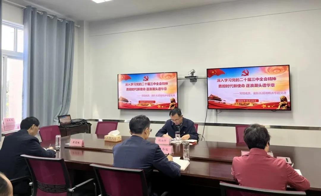 10月23日,国家统计局驻马店调查队开展领导干部上党课活动。党组成员、副队长胡湘晖以《深入学习党的二十届三中全会精神 勇担时代新使命 逐浪潮头谱华章》为题讲授专题党课。胡湘晖结合自身工作实际,从深入领会全会的重大意义、深刻认识新时代全面深化改革取得的重大成就等四个方面作阐释,教育引导全体党员干部用党的创新理论武装头脑、指导实践,以钉钉子精神抓好全会重要改革举措落实。大家纷纷表示,要以党的二十届三中全会精神为指导,立足岗位,以更加饱满的热情和更加务实的作风,推动统计调查工作再上新台阶。