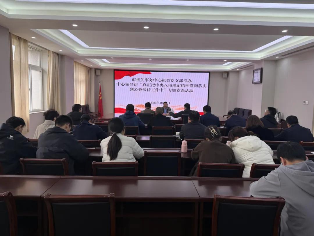 10月21日,市机关事务中心机关党支部开展领导干部讲党课活动。中心副主任戴来运以“学深做实,真正把中央八项规定精神贯彻落实到公务接待工作中”为题,结合新出台的《驻马店市公务接待管理办法》,给机关全体党员讲授了一次生动党课。大家纷纷表示,今后一定要恪尽职守,厉行节约、反对浪费,真正把中央八项规定精神在我市机关事务领域尤其在公务接待工作中落实落细,推动我市机关事务工作高质量发展。