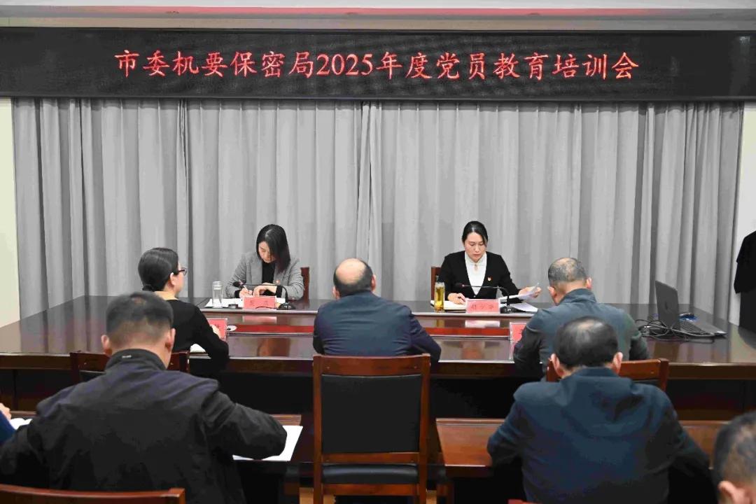 近日,市委机要保密局组织开展2025年度党员教育培训。培训期间,集中学习了《中国共产党第二十届中央委员会第四次全体会议公报》等,副局长、机关党委书记周瑞以《领会核心要义 践行使命担当》为题、总工程师赵爱军以《认清形势担使命 党建引领促发展》为题、副局长王艺敏以《深学细悟党章党规 筑牢党性修养根基》为题,分别围绕学习贯彻党的二十届四中全会精神、形势与政策、深入贯彻中央八项规定精神等主题为全局党员作专题辅导。大家纷纷表示,通过此次系统学习,进一步夯实了理论基础、强化了宗旨意识、明确了努力方向、提升了履职能力。