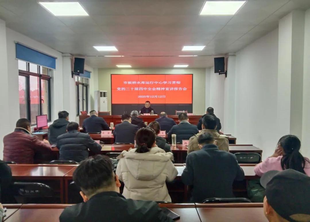 12月12日,市水利局板桥水库运行中心举办学习贯彻党的二十届四中全会精神宣讲报告会。党委书记、主任魏涛结合工作实际,从充分认识党的二十届四中全会的重大意义、准确把握党的二十届四中全会精神的丰富内涵、推动板桥水库各项工作高质量发展三个方面作专题宣讲。与会人员表示,要深入学习领会会议精神,切实把学习中激发的工作热情转化为攻坚克难、干事创业的强大动力,接续推动板桥水库各项工作高质量发展。